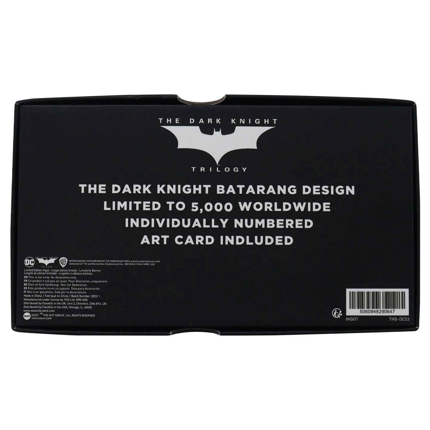 Officially licensed replica of Batman’s Batarang as seen in the Dark Knight Trilogy. Limited to only 5,000 worldwide, this collectible is individually numbered and comes with a built-in display stand in its presentation box.