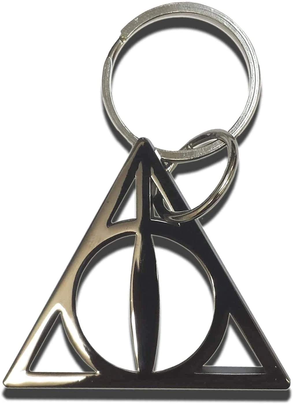A keychain designed in the style of the symbol of the mysterious Deathly Hallows.