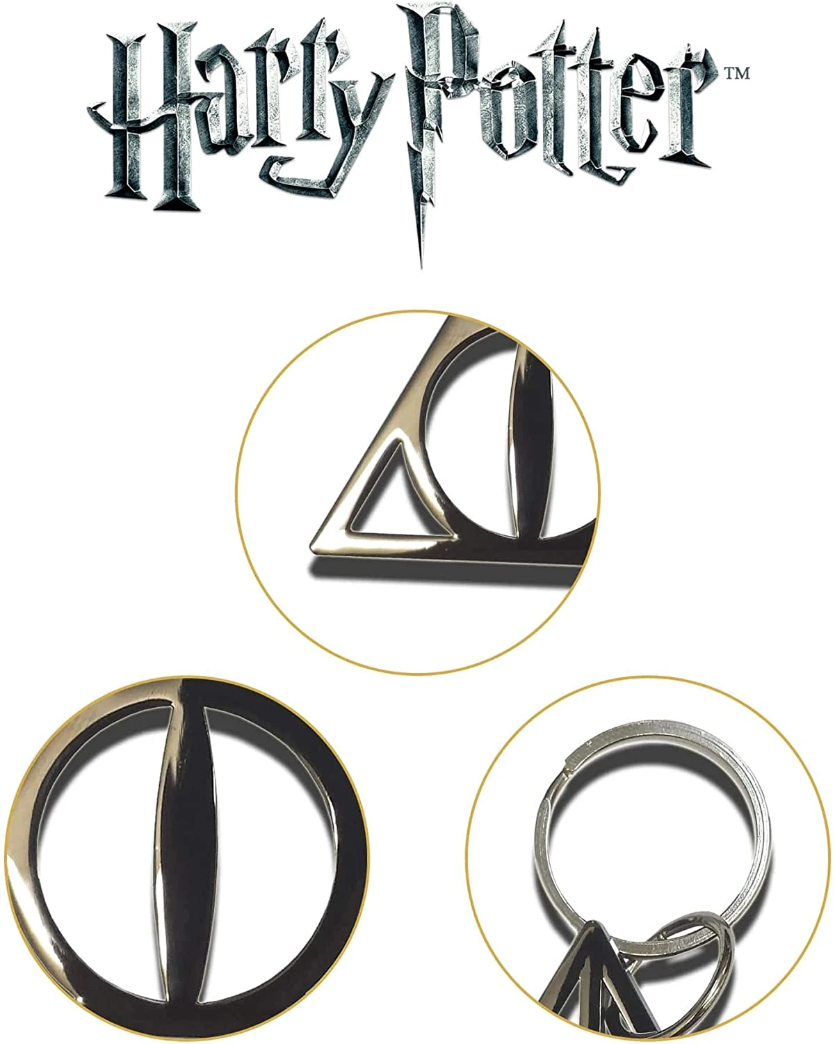 This finely detailed, Deathly Hallows metal keyring measures approx 2″ (4.5cm) in width. The crest will certainly draw attention so be ready to tell your friends where they can get their own! Harry Potter Deathly Hallow metal keyring is an awesome accessory for guys and girls, it is a small and portable gift that fans will love!
