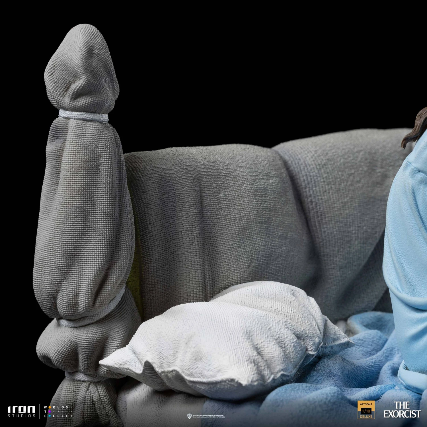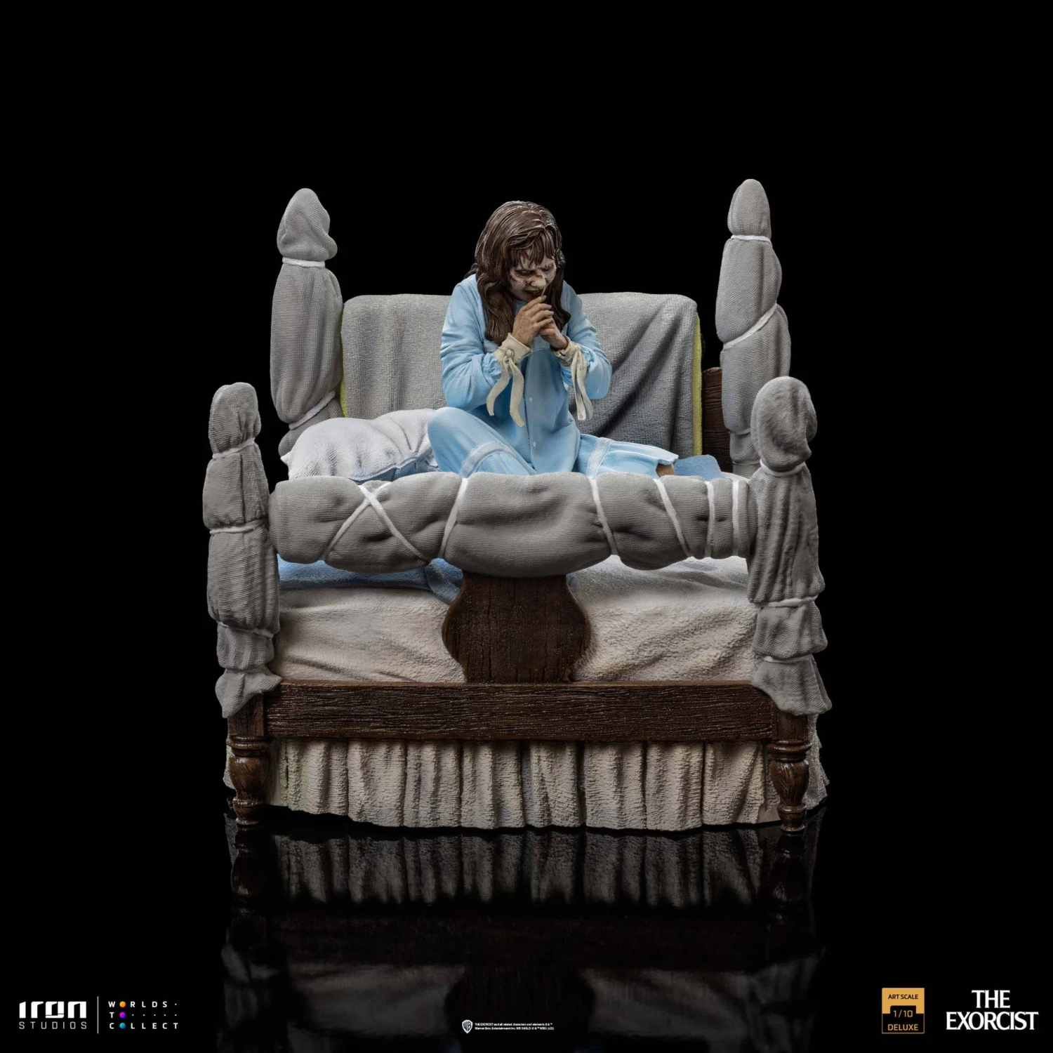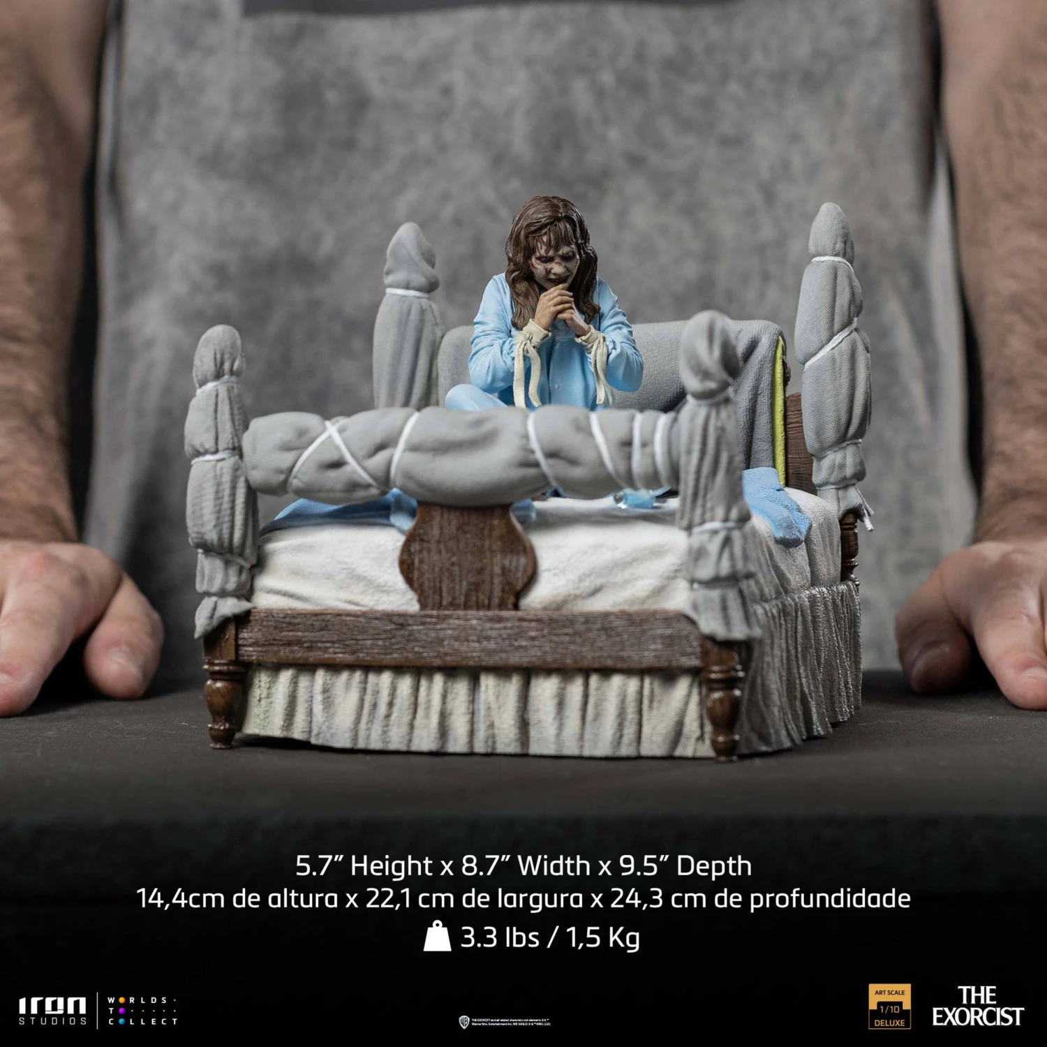 Trapped inside her room in a big house located in Georgetown, a historical neighborhood in the Northwest of Washington, in the U.S., over an old couple bed with padded headboard and footboard to protect its occupant, a demonic evil entity possesses the body of a preteen girl, turning her physically distorted with her body covered in wounds. Seating with a malicious and unhuman countenance, all that the diabolic spirit that lives in her body wishes for is to cause the death of its innocent host. Considered by many as the most terrifying movie of all times, Iron Studios present their statue “Possessed Regan McNeil Deluxe – The Exorcist – Art Scale 1/10”, with the possessed protagonist from “The Exorcist”, one of the greatest horror films ever done, celebrating its 50-year-anniversary of causing shivers of fear and horror in many generations.