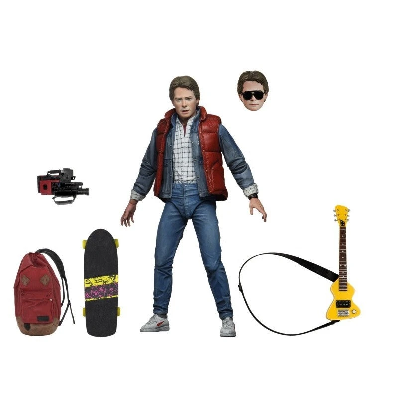 This figure stands 7 inches tall and comes with awesome accessories like an alternate sunglasses head, camcorder, backpack, skateboard, and guitar.