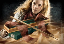 The wand of Hermione Granger, brightest witch of her age, Gryffindor, and best friend to Ron and Harry. Complete with Ollivanders box, with velvet-feel material and a decorative ribbon. Name clip not included. Wand measures approx 38cm.