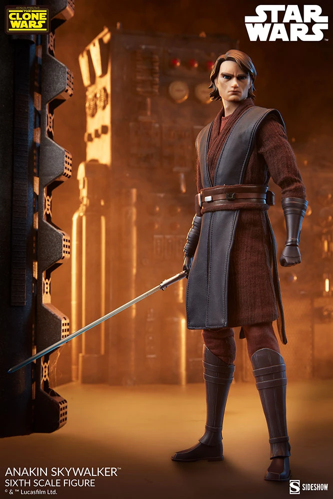The Anakin Skywalker Sixth Scale Figure captures the Jedi Knight’s distinct design from the fan-favorite animated series The Clone Wars, as he works to keep the galactic peace alongside the Jedi Order. This articulated figure features a stylized headsculpt and a carefully tailored fabric costume consisting of a Jedi robe, tunic, undershirt, tabards, pants, a sash, a belt with sculpted accessories, and sculpted boots and gauntlets to create his signature uniformed look.