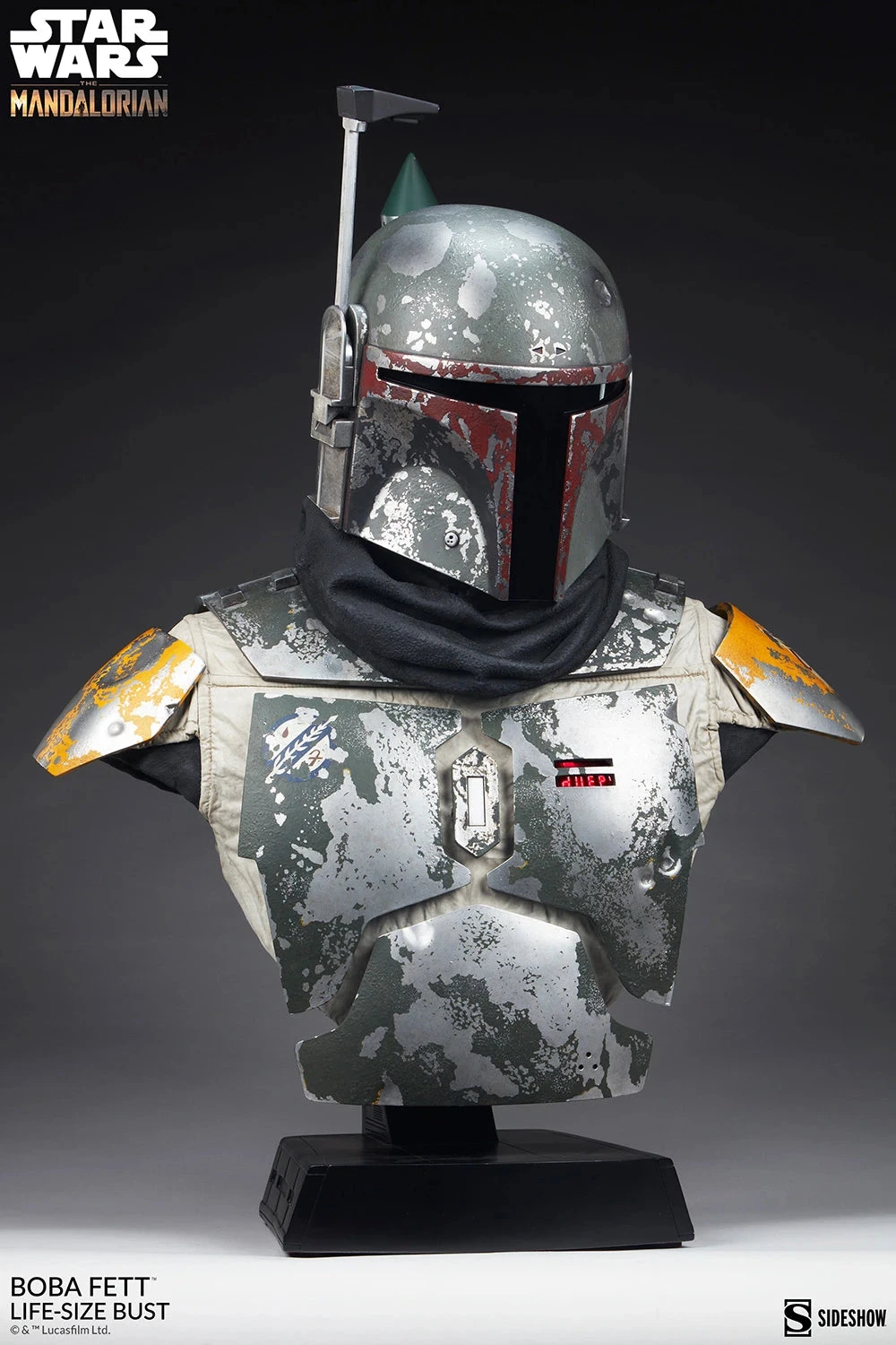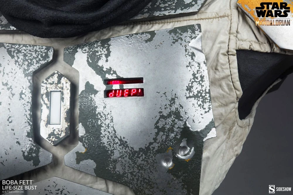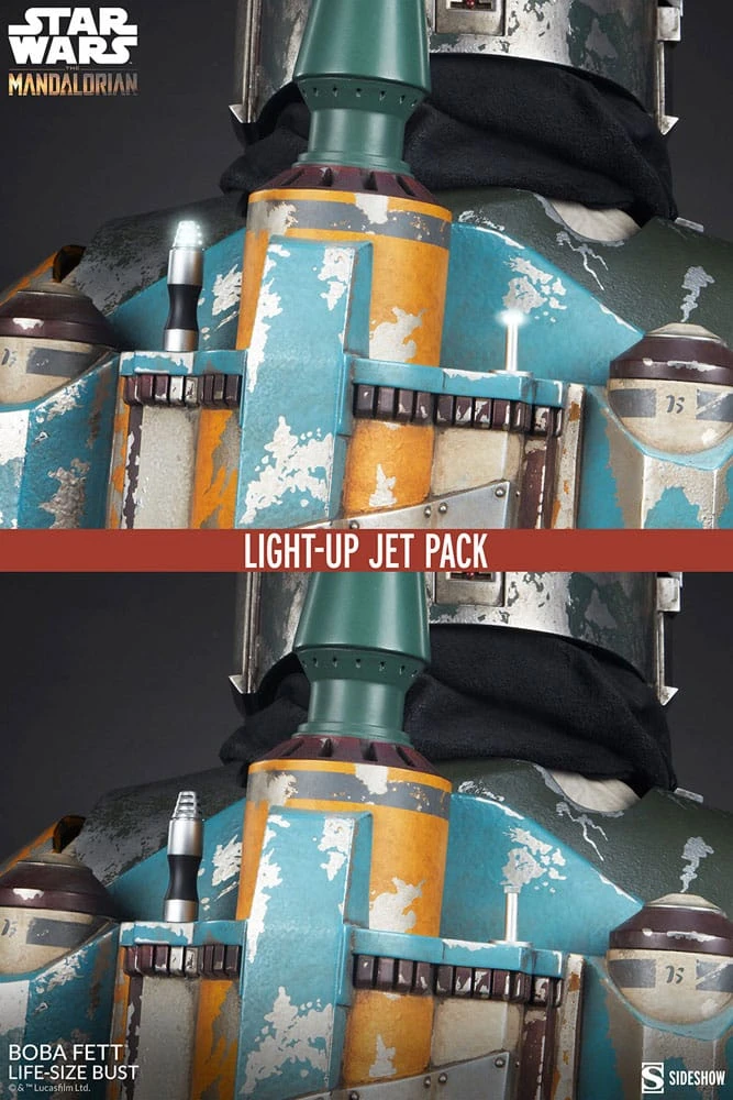 The digital chest plate, and jetpack have additional light-up elements to add display options. Mounted on a sleek and simple black base, the Boba Fett Life-Size Bust is a must-have centerpiece for your Star Wars collection.