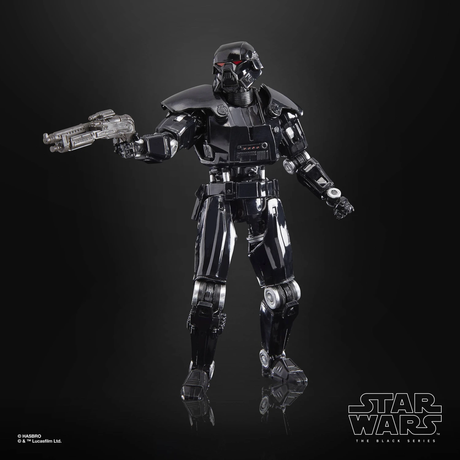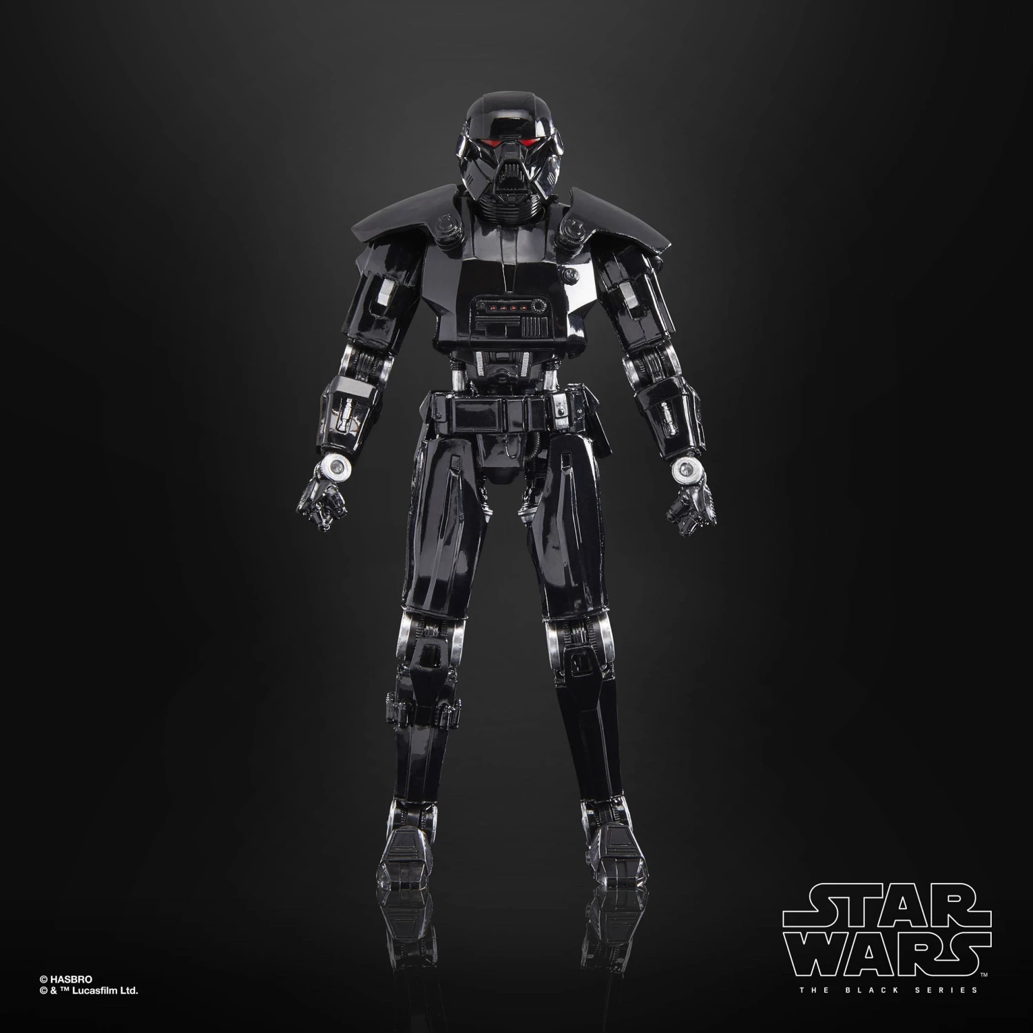The 6-inch-scale Black Series figure is detailed to look like the Dark Trooper character from Star Wars: The Mandalorian, featuring premium detail and multiple points of articulation.