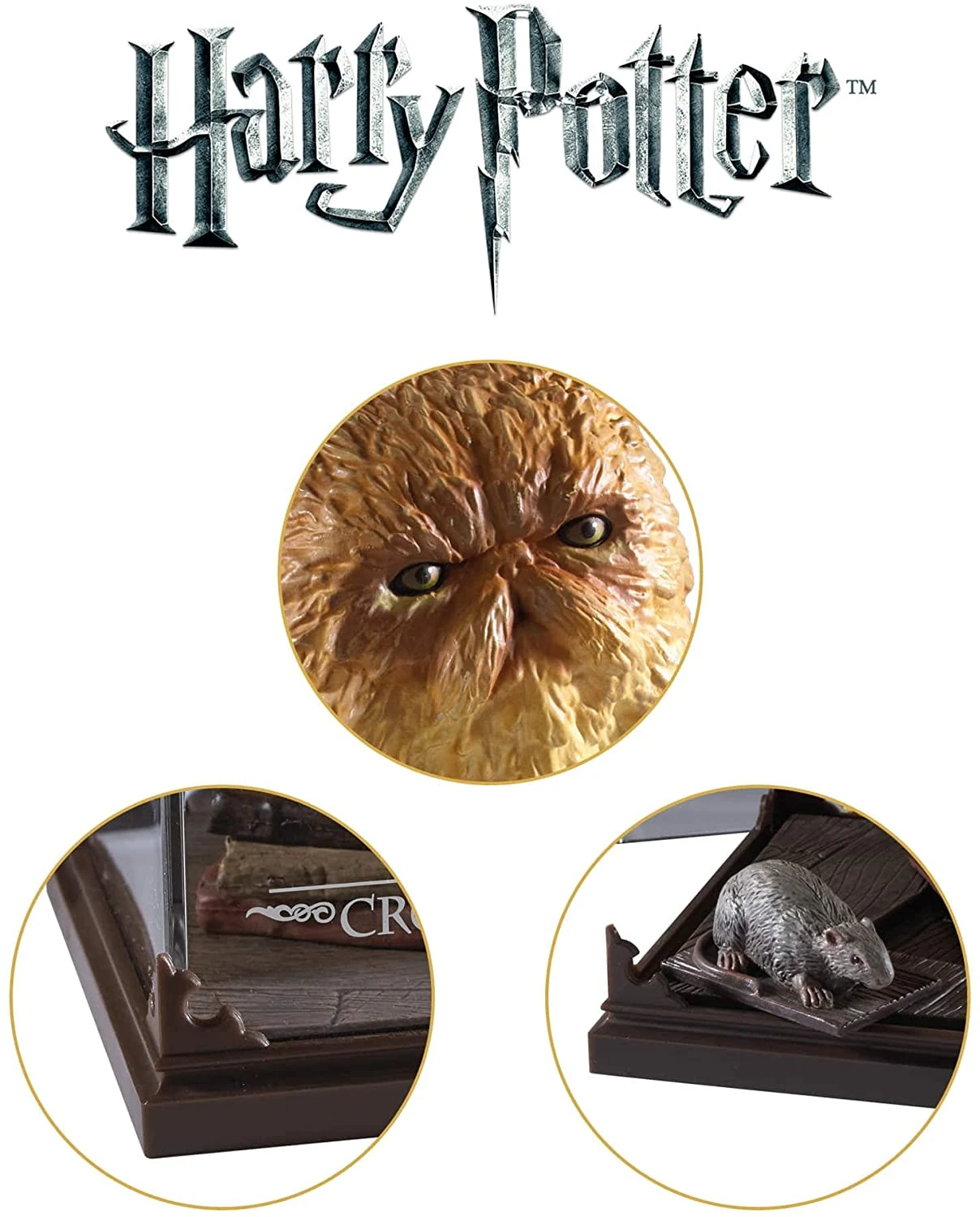 Crookshanks is a half-kneazle orange cat with a distinctive squashed face and is the beloved pet of Hermione Granger. This mini sculpture comes with a hidden Scabbers.
