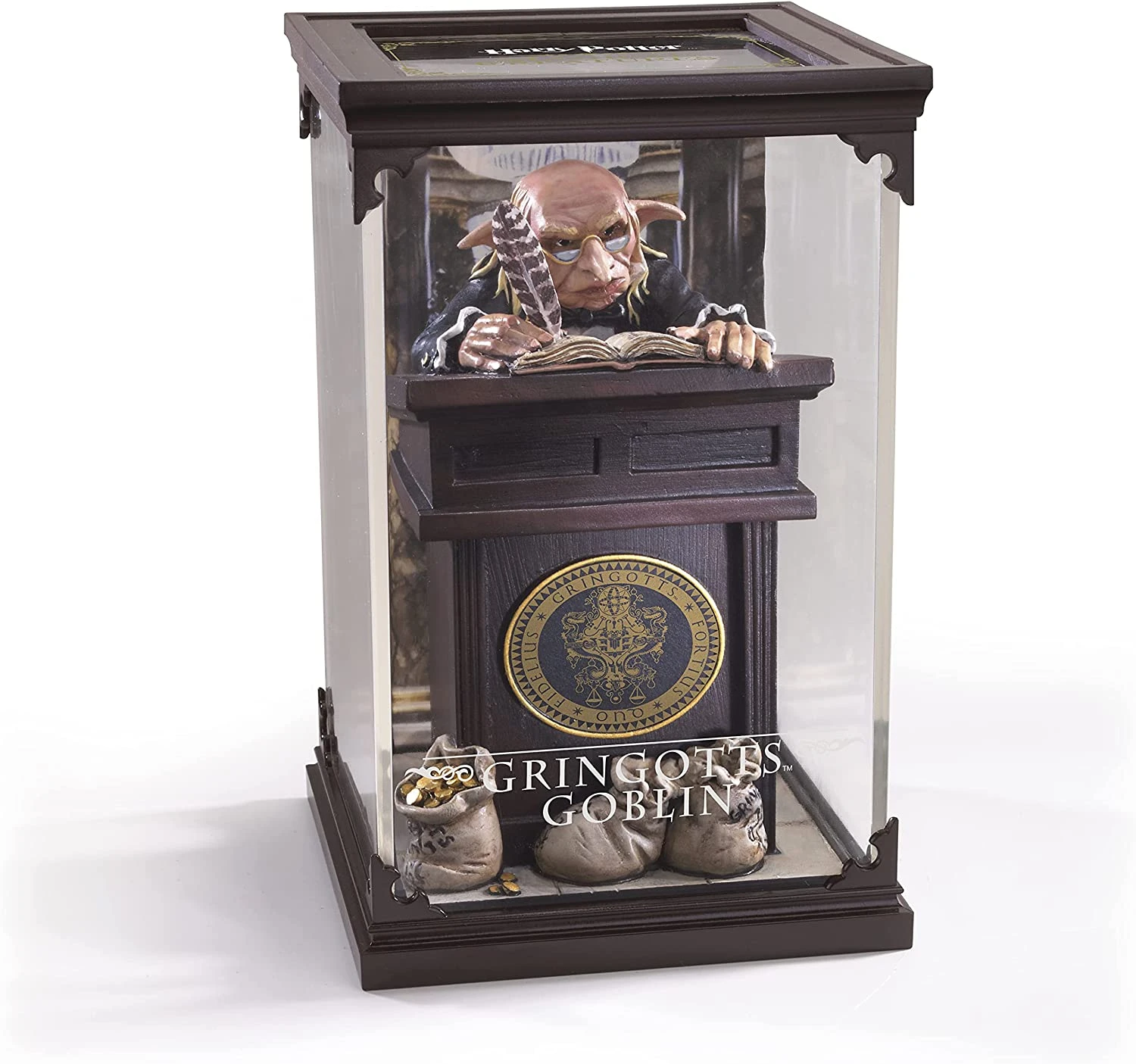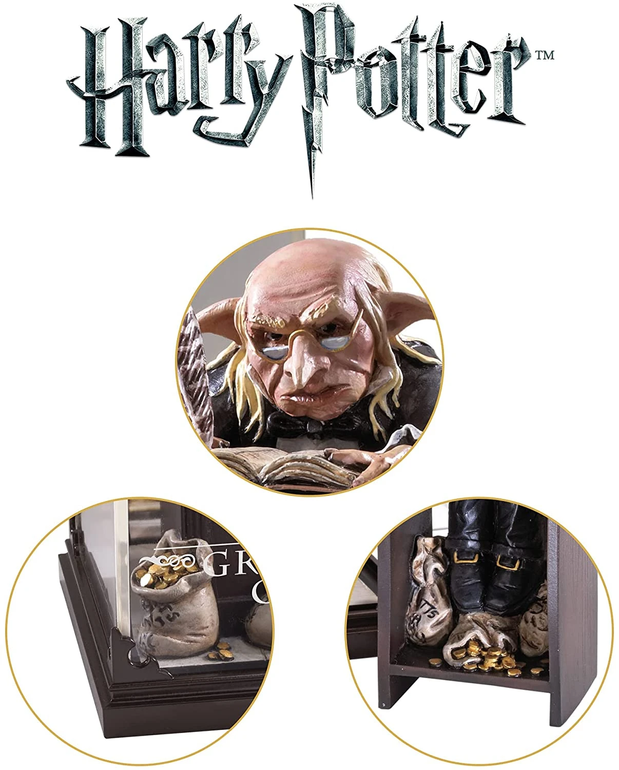 A finely crafted, hand-painted plastic sculpture of the Gringotts Goblin. The Gringotts Wizarding Bank is owned and operated by goblins and was founded by a goblin called Gringott.