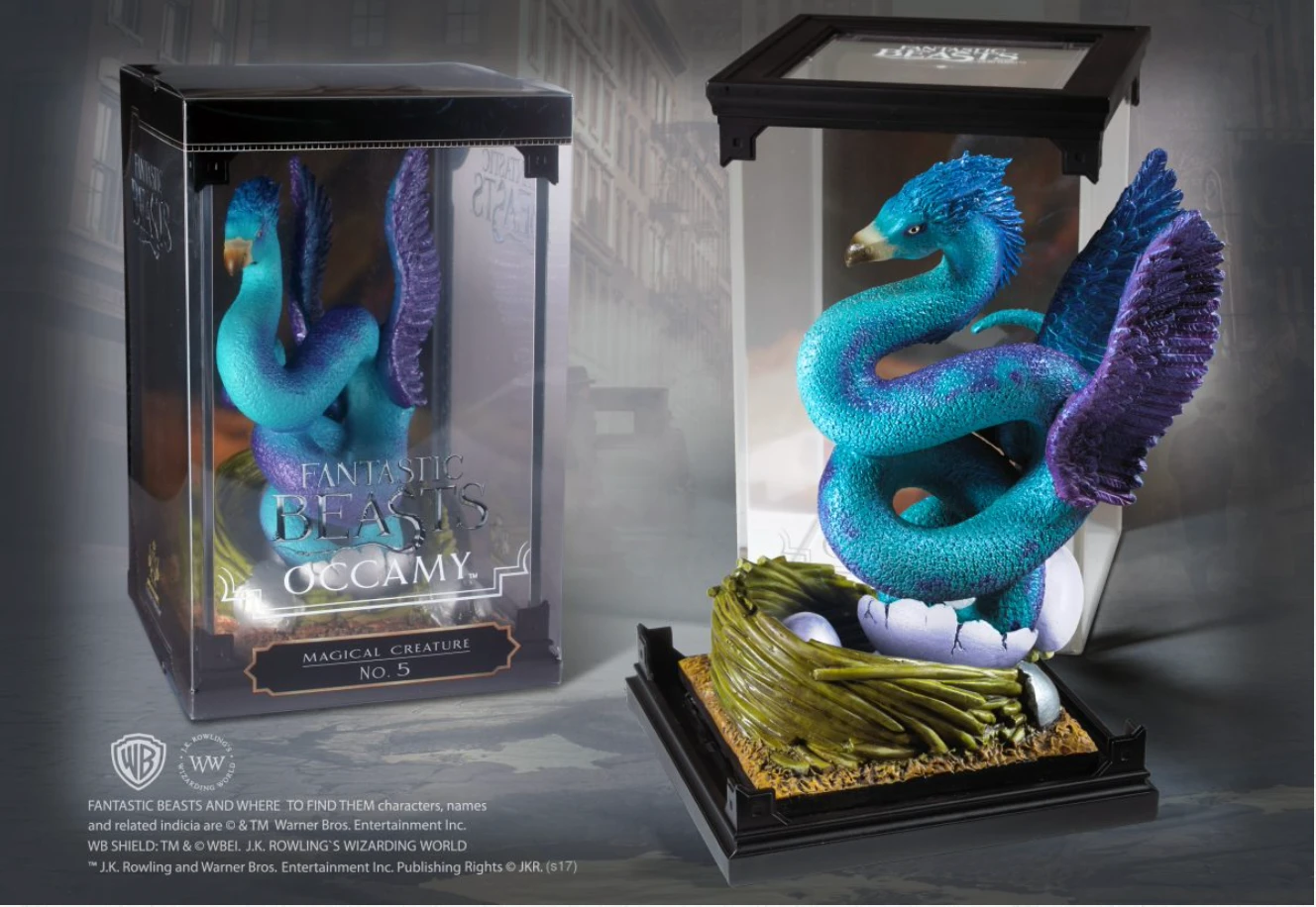 A finely crafted, hand painted sculpture of the Occamy, a creature that can grow or shrink to fit the available space. The Occamy lays silver eggs and can be aggressive to those that approach it, particularly when protecting its eggs.